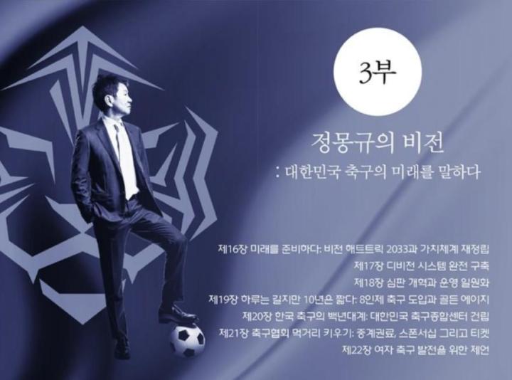 回到一个老生常谈的话题,为什么我一直认为只有郑梦奎的连任才是韩国足球的福音。因为只有他的连任,这个一直要做的“七级联赛金字塔”构想才能延续,不至于半途而废。一项改革举措,如果方向是进步的,遇到问题修正远比全盘否定要好。不可否认,“七级联赛金字塔”构想是它的局限性和空想性,但也不可否认它的进步性,也许在2033年到来前,这套体系已经成为让韩国足球复兴的一个关键。所以,即使现在有太多的挫折和困难,也要坚持完成下去,总会看到曙光的那天,不是吗?今天的争议,也许会是未来成功道路上的一个小插曲。