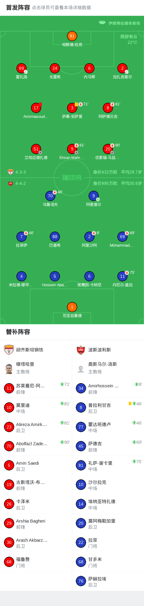 下半场补时第2分钟,胡齐斯坦钢铁球员雷扎扬助攻艾哈迈德扎德打入一球。