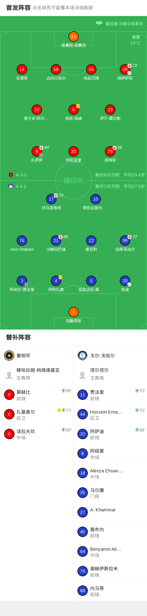 塞帕罕1-1戈尔-戈哈尔,阿米尔-贾法里先拔头筹,礼萨伊扳平