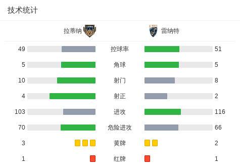 下半场补时第5分钟,雷纳特球队Jonathan Spedalieri吃到红牌。