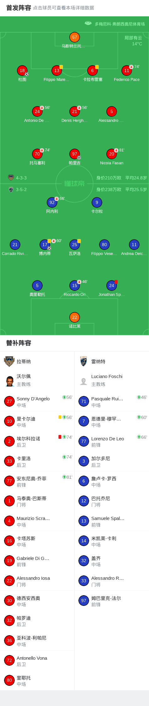 拉蒂纳2-1雷纳特,帕里吉、杜图破门