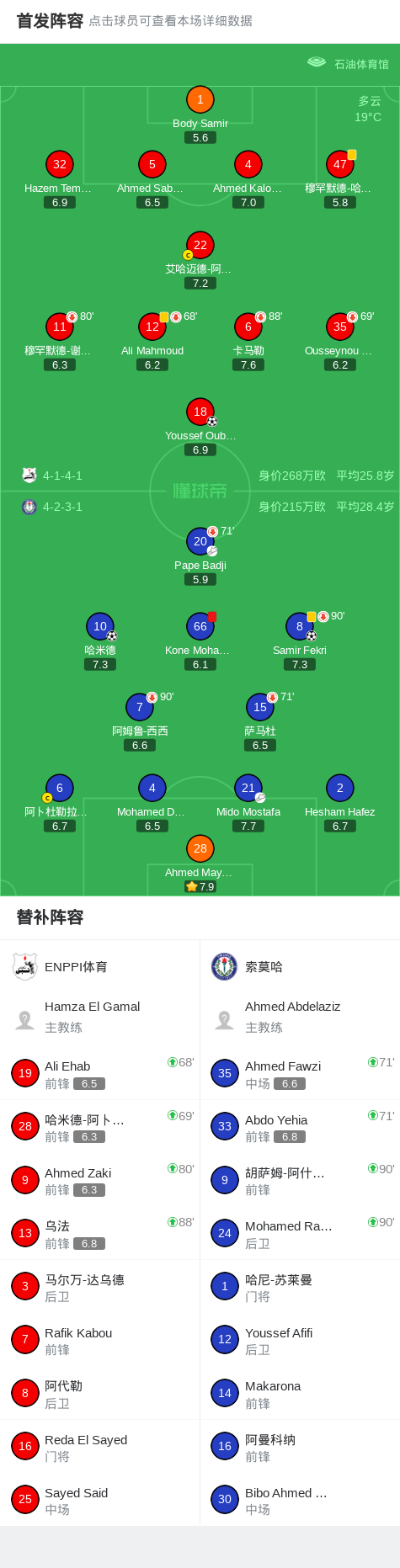 第19分钟,索莫哈球员Pape Badji助攻哈米德打入一球。