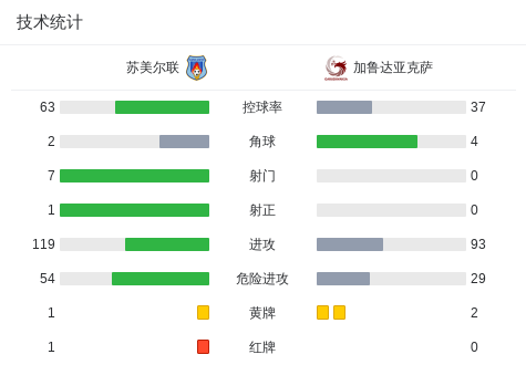 苏美尔联0-0加鲁达亚克萨,两队破门乏术战报bot @懂球帝01-30 21:54北京时间1月30日印尼足球甲级联赛 小组赛 第18轮,苏美尔联主场对阵加鲁达亚克萨。最终比分苏美尔联 0-0 加鲁达亚克萨。点击查看本场比赛详细数据>>精彩瞬间下半场补时第4分钟,苏美尔联球队hutagalung吃到第二张黄牌。 球队阵容 技术统计 展开更多