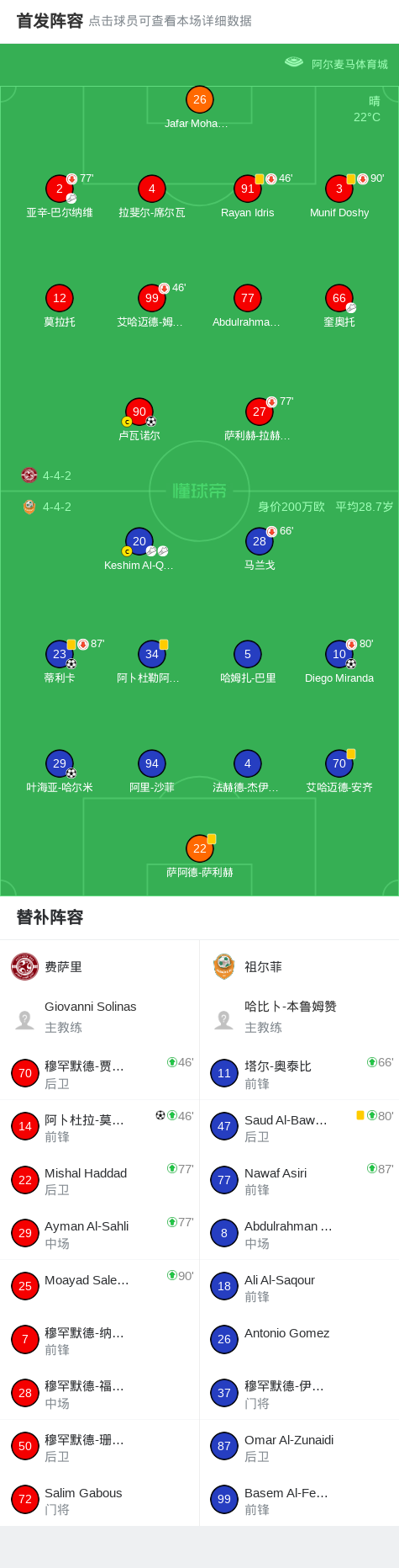 第22分钟,祖尔菲球员Keshim Al-Qahtani助攻蒂利卡打入一球。