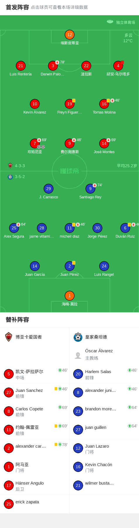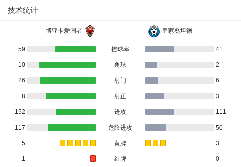 下半场补时第5分钟,博亚卡爱国者球队胡安-乌尔塔多吃到红牌。