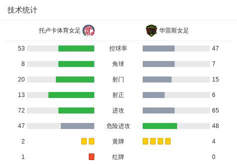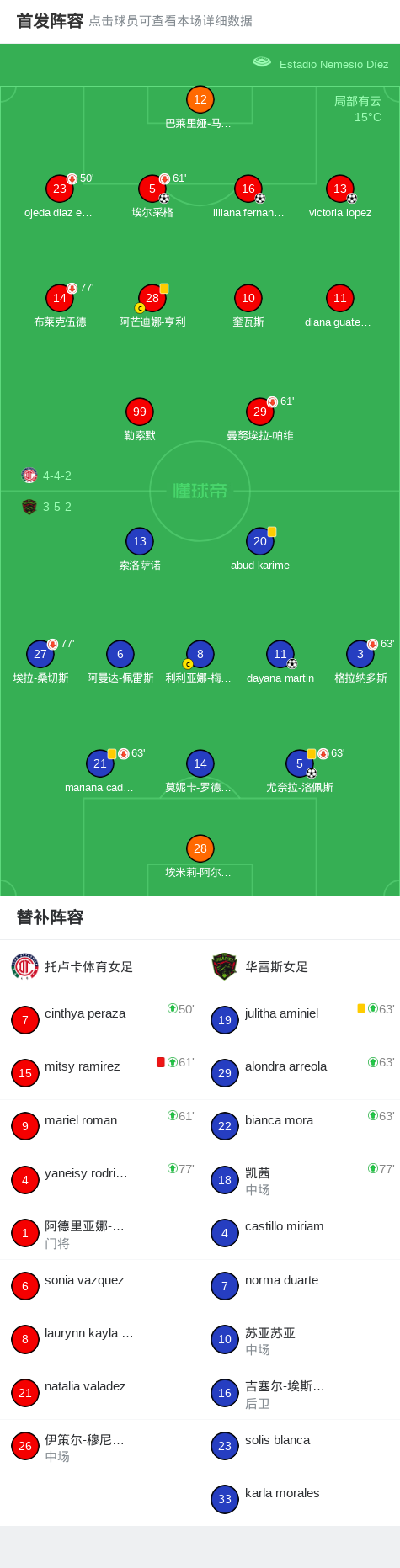 第74分钟,托卢卡体育女足球队mitsy ramirez吃到红牌。