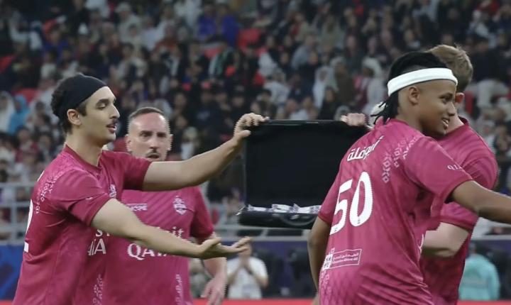 Mr Beast此前曾多次参与慈善比赛,这次,他在罚点球前,突然示意替补席将某样东西拿过来。结果,竟然是一只装满现金的行李箱。