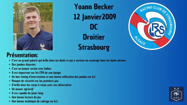 官方消息,斯特拉斯堡和刚满17岁的法国U16国脚贝克(Yoann Becker)签下职业合同。