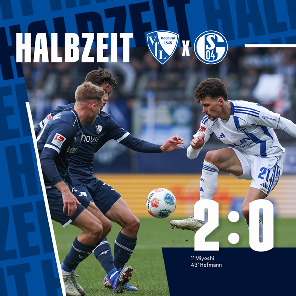 半场结束 沙尔克 0-2 波鸿 三好康儿一分钟进球,霍夫曼劲射破网 需要做的还有很多