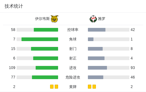 第42分钟,伊尔韦斯球员斯特约平打入一球。