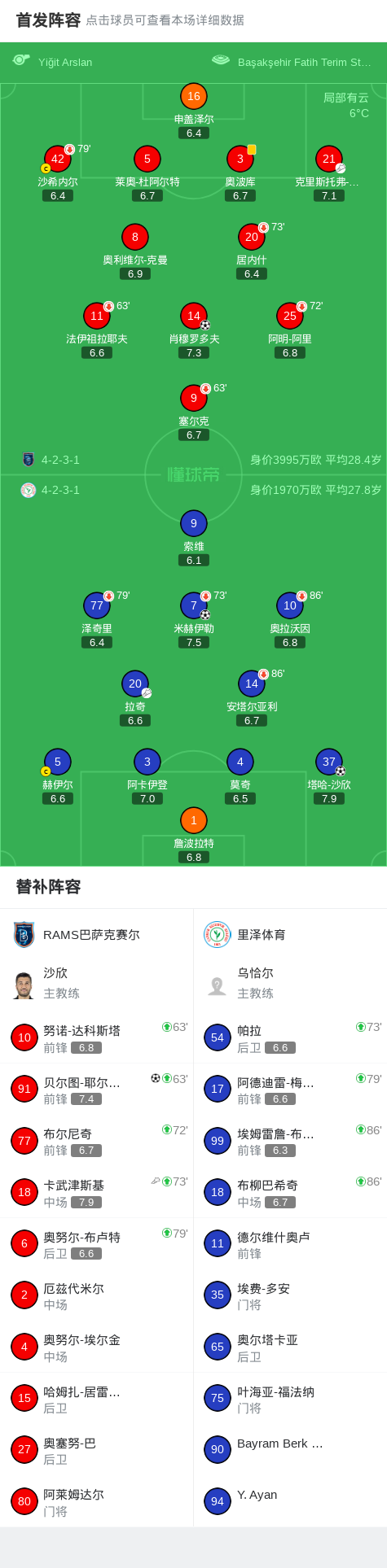 RAMS巴萨克赛尔2-2里泽体育,肖穆罗多夫先拔头筹,贝尔图-耶尔德勒姆扳平