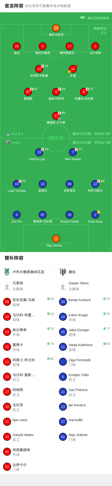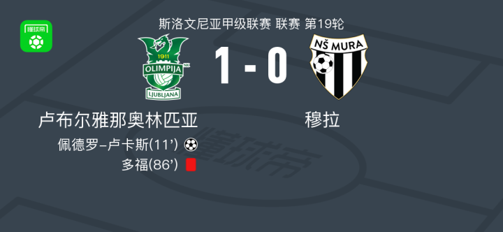 卢布尔雅那奥林匹亚1-0穆拉,佩德罗-卢卡斯制胜