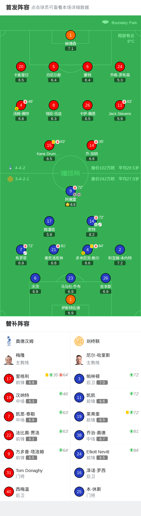 北京时间1月31日英格兰足球乙级联赛 联赛 第30轮,奥德汉姆主场对阵剑桥联。剑桥联奈特破门,阿佩雷梅开二度。最终比分奥德汉姆 0-3 剑桥联。
