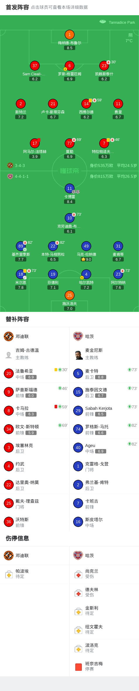 第75分钟,邓迪联球队卡马拉吃到红牌。