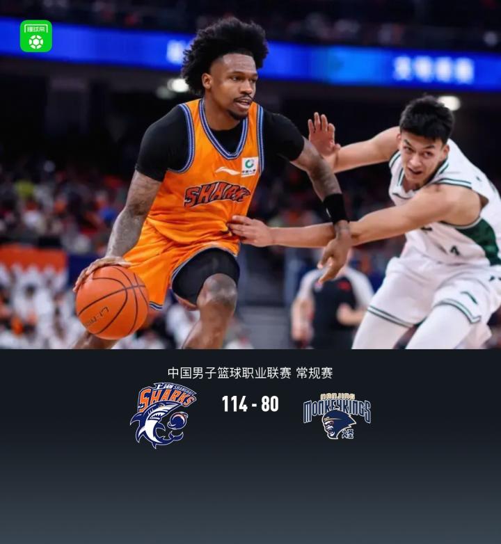 第四节上海刘礼嘉拿下6分,同曦布雷迪-马内克拿下9分,最终上海114-80战胜同曦