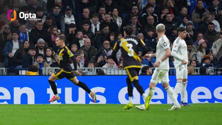 在与巴列卡诺的西甲第22轮比赛中,皇家马德里在下半场被扳平比分,至此,皇马自2025年以来各项赛事已丢了94球,同期五大联赛球队仅次于法兰克福。