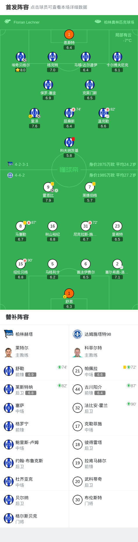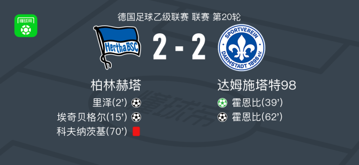 柏林赫塔2-2达姆施塔特98,里泽首开记录,霍恩比扳平比分