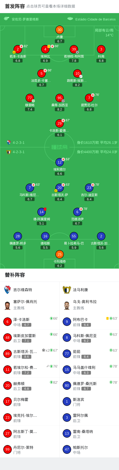 吉尔维森特5-0血洗法马利康,古斯塔沃-瓦雷拉双响,桑蒂-加西亚建功