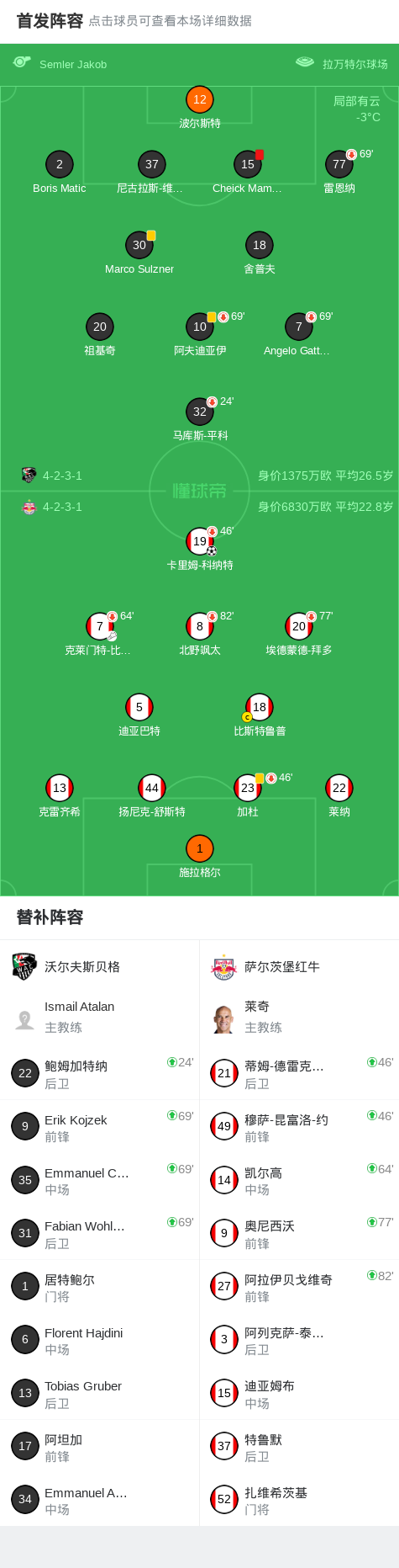 萨尔茨堡红牛1-0沃尔夫斯贝格,卡里姆-科纳特助球队取胜