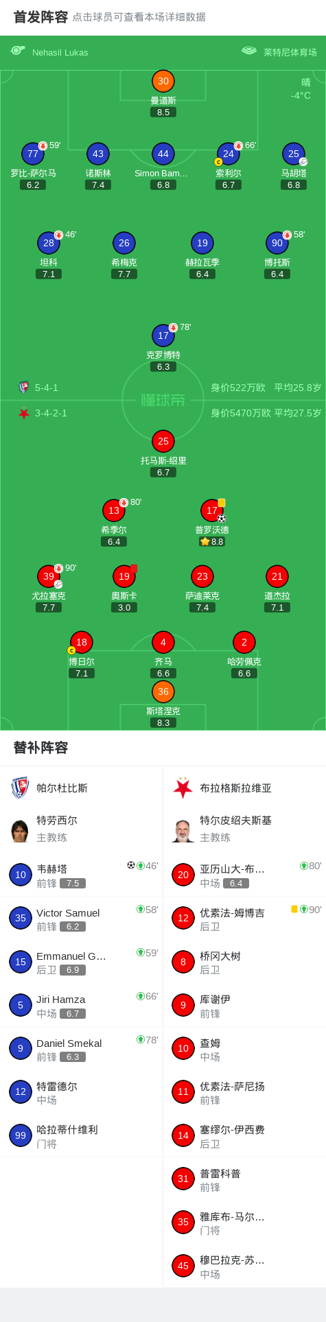帕尔杜比斯1-1布拉格斯拉维亚,普罗沃德首开记录,韦赫塔救主