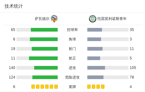 第60分钟,萨瓦德尔球员福尔内斯打入一球。