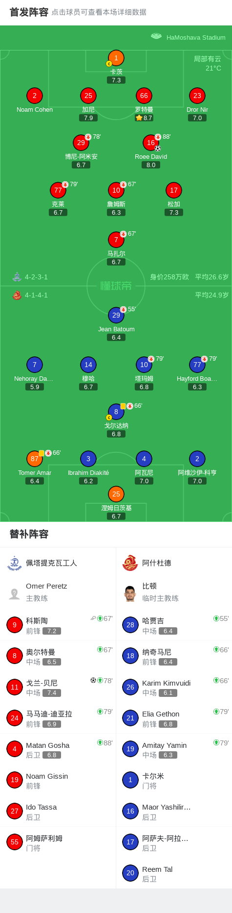 第50分钟,佩塔提克瓦工人球员Roee David打入一球。