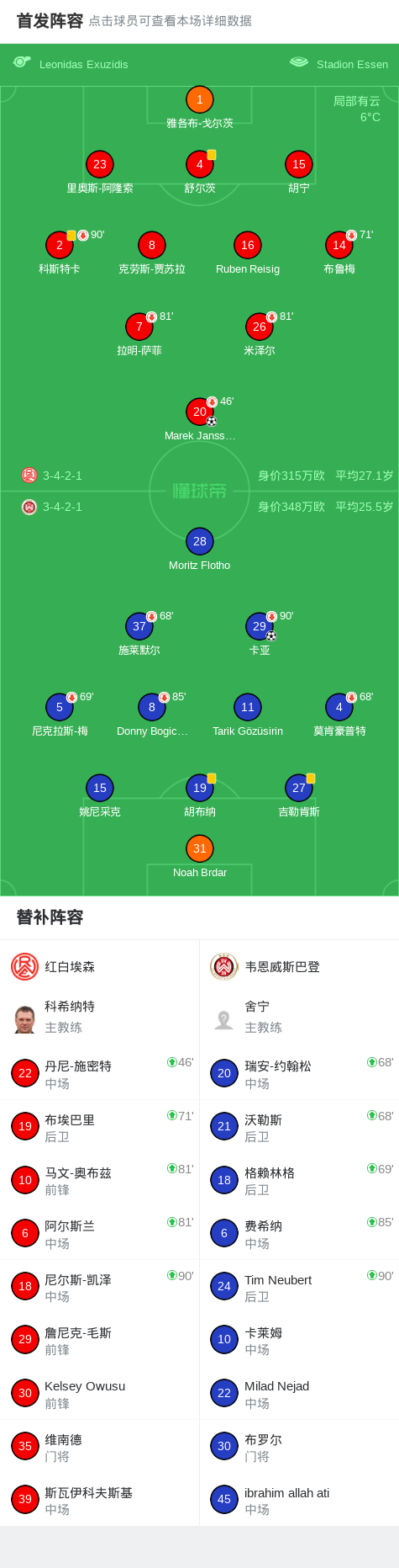 红白埃森1-1韦恩威斯巴登,Marek Janssen首开记录,卡亚救主