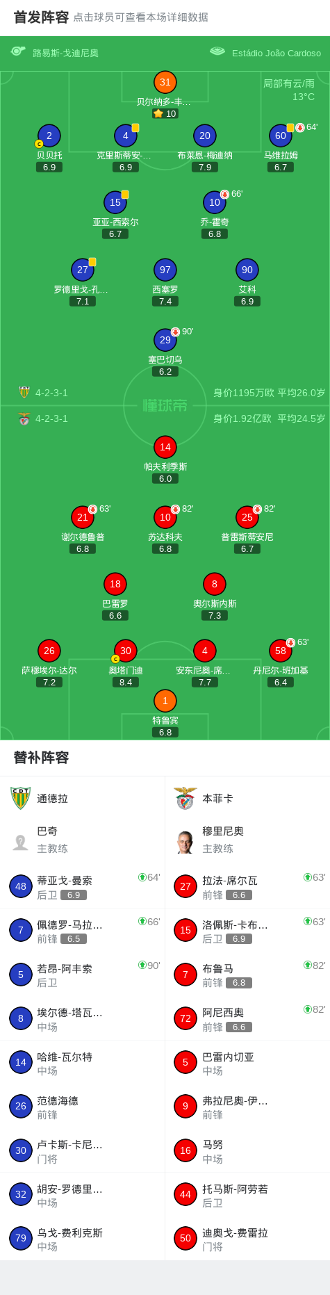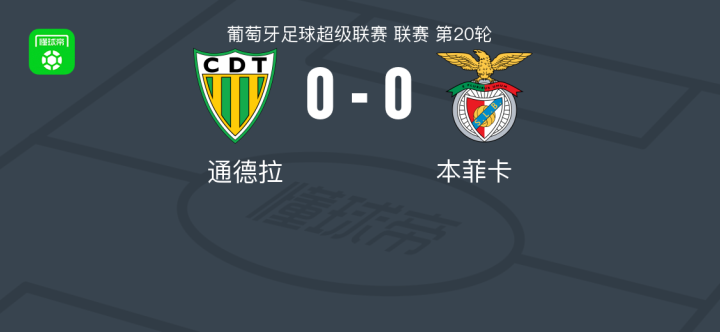 通德拉0-0本菲卡,双方互交白卷战报bot @懂球帝02-02 06:31北京时间2月2日葡萄牙足球超级联赛 联赛 第20轮,通德拉主场对阵本菲卡。最终比分通德拉 0-0 本菲卡。点击查看本场比赛详细数据>>点击查看葡超完整积分榜>> 球队阵容 技术统计 展开更多