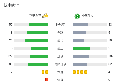 第74分钟,克里丘马球员瓦吉尼尼奥打入一球。