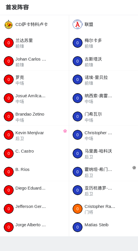 北京时间2月2日萨尔瓦多足球超级联赛 秋季联赛 第4轮,CD萨卡特科卢卡主场对阵联盟。CD萨卡特科卢卡Kevin Menjívar自摆乌龙。联盟霍纳坦-希门尼斯破门。最终比分CD萨卡特科卢卡 0-2 联盟。
