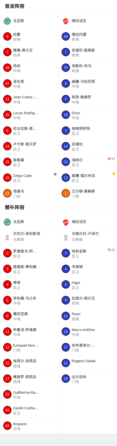 戈亚斯1-0维拉诺瓦,Diego Caito一锤定音战报bot @懂球帝02-02 07:35北京时间2月2日巴西戈伊亚诺甲级联赛 联赛 第7轮,戈亚斯主场对阵维拉诺瓦。戈亚斯Diego Caito破门。最终比分戈亚斯 1-0 维拉诺瓦。点击查看本场比赛详细数据>>精彩瞬间第33分钟,戈亚斯球员Diego Caito打入一球。 球队阵容 技术统计 展开更多