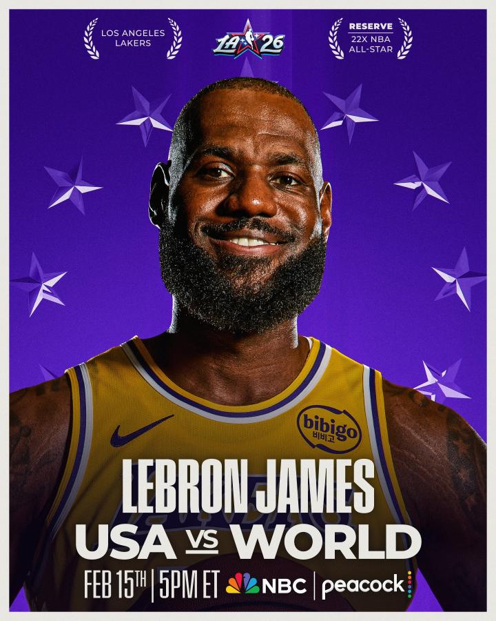 现年41岁的湖人前锋詹姆斯职业生涯首次以替补球员身份入选全明星赛。