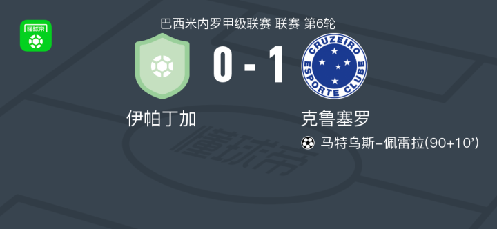 克鲁塞罗1-0伊帕丁加,马特乌斯-佩雷拉助球队取胜战报bot @懂球帝02-02 09:07北京时间2月2日巴西米内罗甲级联赛 联赛 第6轮,伊帕丁加主场对阵克鲁塞罗。克鲁塞罗马特乌斯-佩雷拉破门。最终比分伊帕丁加 0-1 克鲁塞罗。点击查看本场比赛详细数据>>精彩瞬间下半场补时第10分钟,克鲁塞罗球员肯尼-阿罗约助攻马特乌斯-佩雷拉打入一球。 球队阵容 技术统计 展开更多
