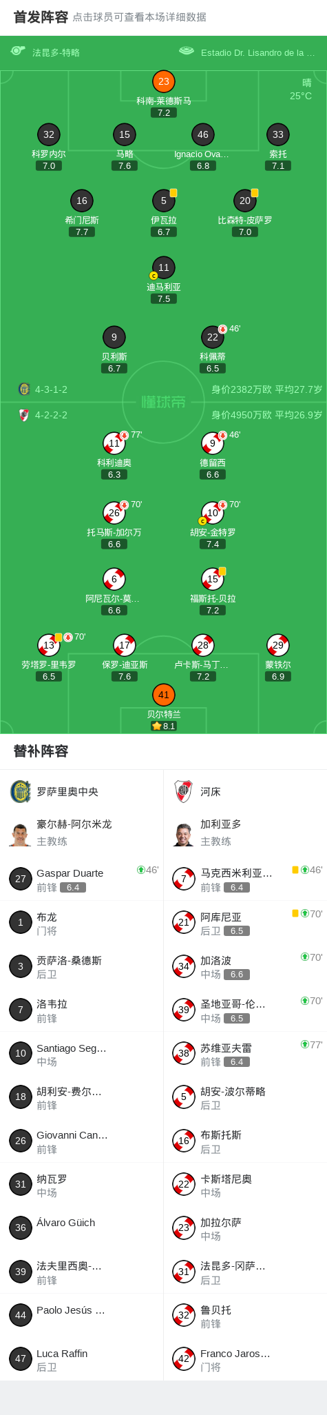 罗萨里奥中央0-0河床,难分伯仲战报bot @懂球帝02-02 10:24北京时间2月2日阿根廷足球超级联赛 春季联赛 第3轮,罗萨里奥中央主场对阵河床。最终比分罗萨里奥中央 0-0 河床。点击查看本场比赛详细数据>>点击查看阿超完整积分榜>> 球队阵容 技术统计 展开更多