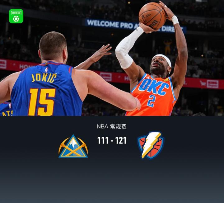 雷霆121-111力克掘金,亚历山大34+13,约基奇16+7+8,沃特森29分