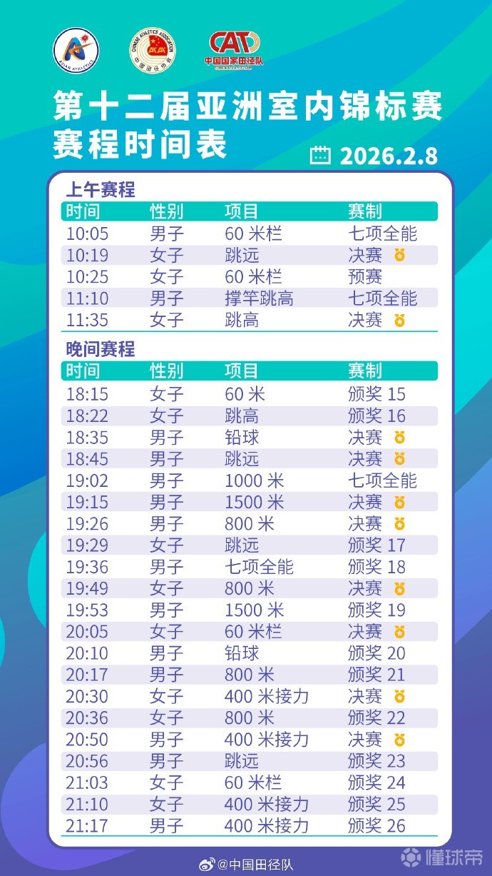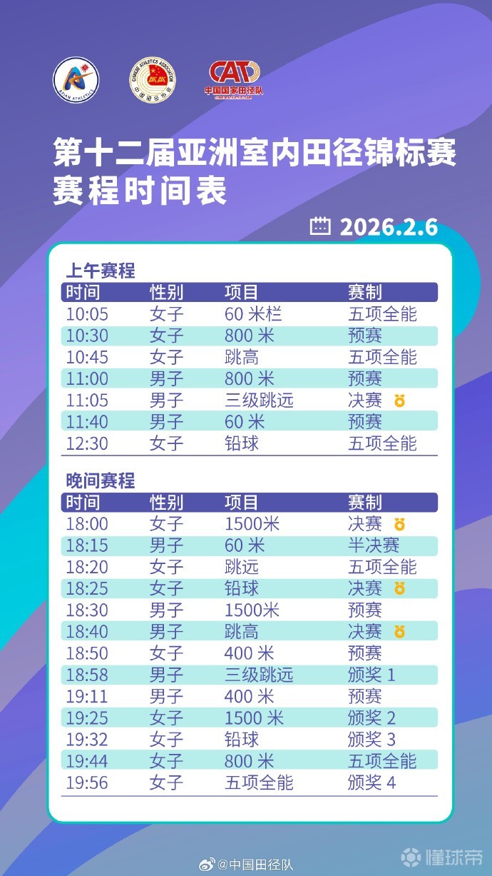 2月2日,据官方报道,作为亚洲范围内最高级别的室内田径赛事,第十二届亚洲室内田径锦标赛将于2月6日—8日在天津团泊体育中心室内田径馆举行。