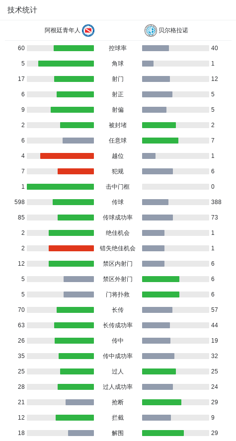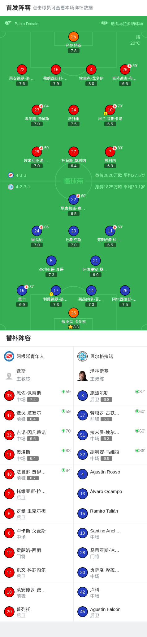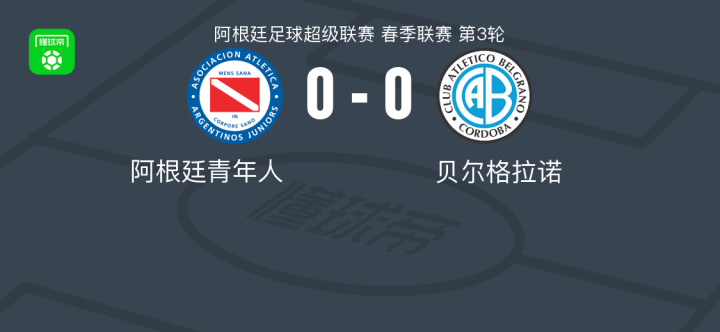阿根廷青年人0-0贝尔格拉诺,双方互交白卷战报bot @懂球帝02-03 10:52北京时间2月3日阿根廷足球超级联赛 春季联赛 第3轮,阿根廷青年人主场对阵贝尔格拉诺。最终比分阿根廷青年人 0-0 贝尔格拉诺。点击查看本场比赛详细数据>>点击查看阿超完整积分榜>> 球队阵容 技术统计 展开更多