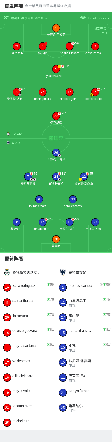 蒙特雷女足5-1大胜拉古纳女足,布尔肯罗德两球,monroy daniela破门