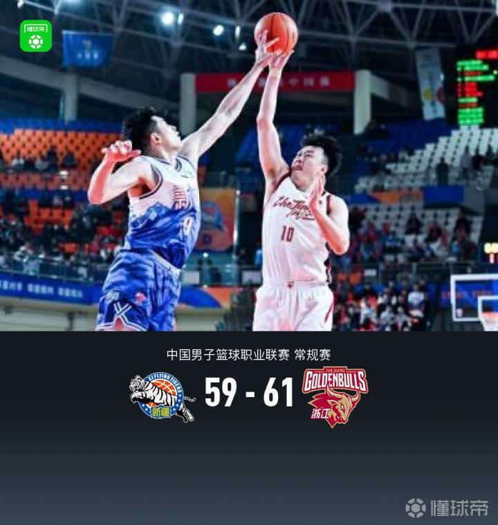 北京时间2月3日中国男子篮球职业联赛 常规赛,新疆伊力特对阵浙江稠州金租。半场新疆32-36浙江,最终新疆59-61浙江。