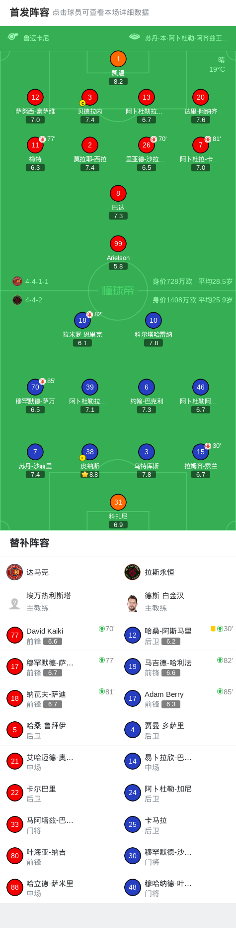达马克0-0拉斯永恒,双方握手言和战报bot @懂球帝02-04 01:32北京时间2月3日沙特阿拉伯联 联赛 第20轮,达马克主场对阵拉斯永恒。最终比分达马克 0-0 拉斯永恒。点击查看本场比赛详细数据>>点击查看沙特联完整积分榜>> 球队阵容 技术统计 展开更多