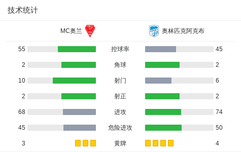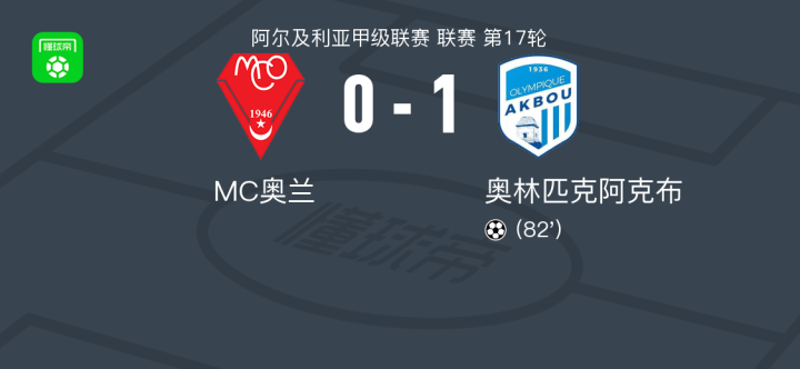 奥林匹克阿克布1-0MC奥兰战报bot @懂球帝02-04 01:55北京时间2月4日阿尔及利亚甲级联赛 联赛 第17轮,MC奥兰主场对阵奥林匹克阿克布。最终比分MC奥兰 0-1 奥林匹克阿克布。点击查看本场比赛详细数据>>点击查看阿尔甲完整积分榜>>精彩瞬间第82分钟,奥林匹克阿克布球员打入一球。 球队阵容 技术统计 展开更多