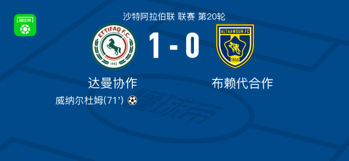 达曼协作1-0布赖代合作,威纳尔杜姆一剑封喉战报bot @懂球帝02-04 03:24北京时间2月4日沙特阿拉伯联 联赛 第20轮,达曼协作主场对阵布赖代合作。达曼协作威纳尔杜姆破门。最终比分达曼协作 1-0 布赖代合作。点击查看本场比赛详细数据>>点击查看沙特联完整积分榜>>精彩瞬间第71分钟,达曼协作球员威纳尔杜姆打入一球。 球队阵容 技术统计 展开更多
