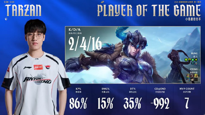 本局MVP给到阻止WBG中期拿到龙魂的Tarzan!