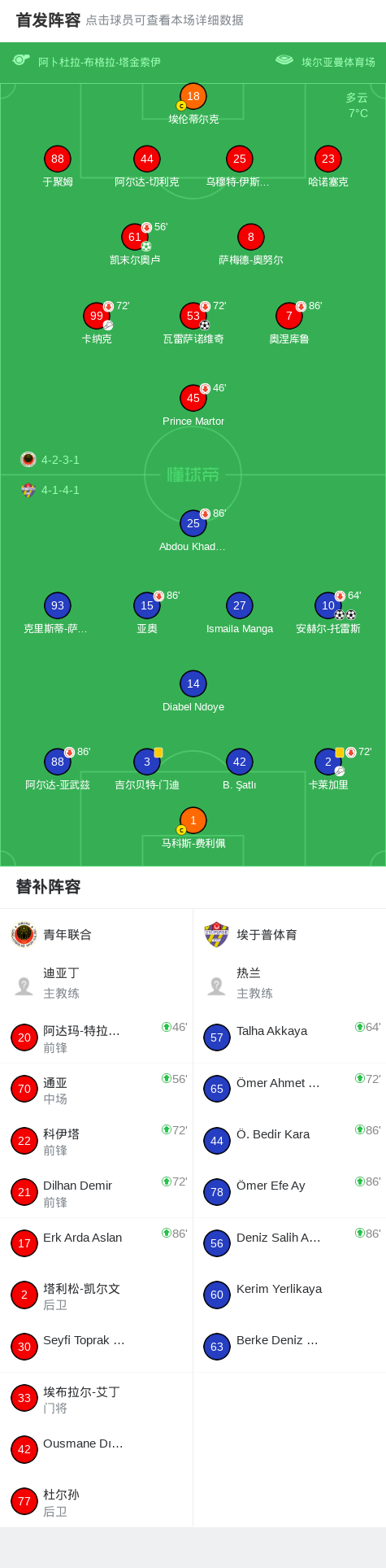 北京时间2月4日土耳其杯 小组赛 第3轮,青年联合对阵埃于普体育。青年联合瓦雷萨诺维奇破门,凯末尔奥卢破门。埃于普体育安赫尔-托雷斯梅开二度。最终比分青年联合 2-2 埃于普体育。