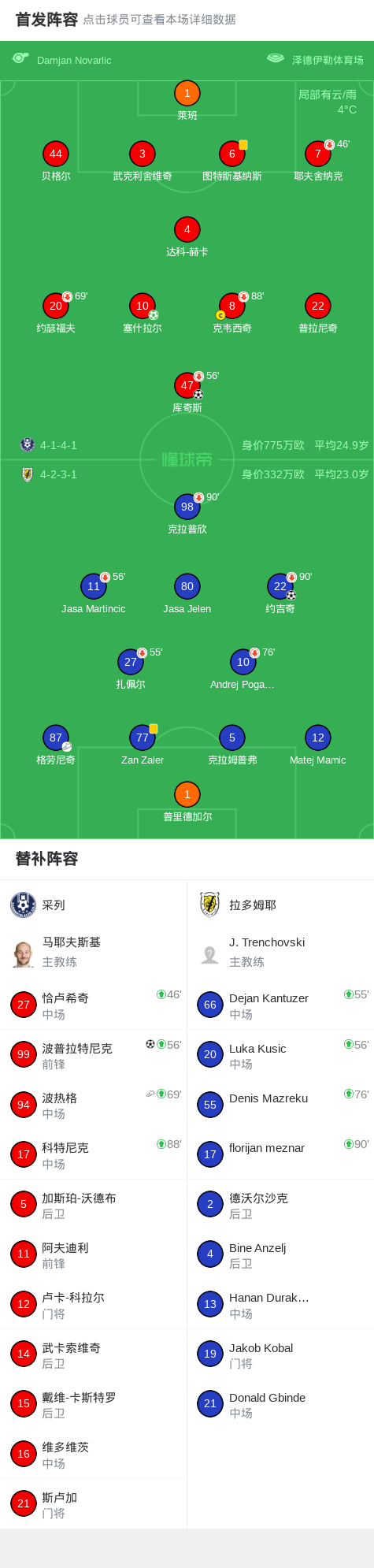 第77分钟,采列球员波热格助攻波普拉特尼克打入一球。