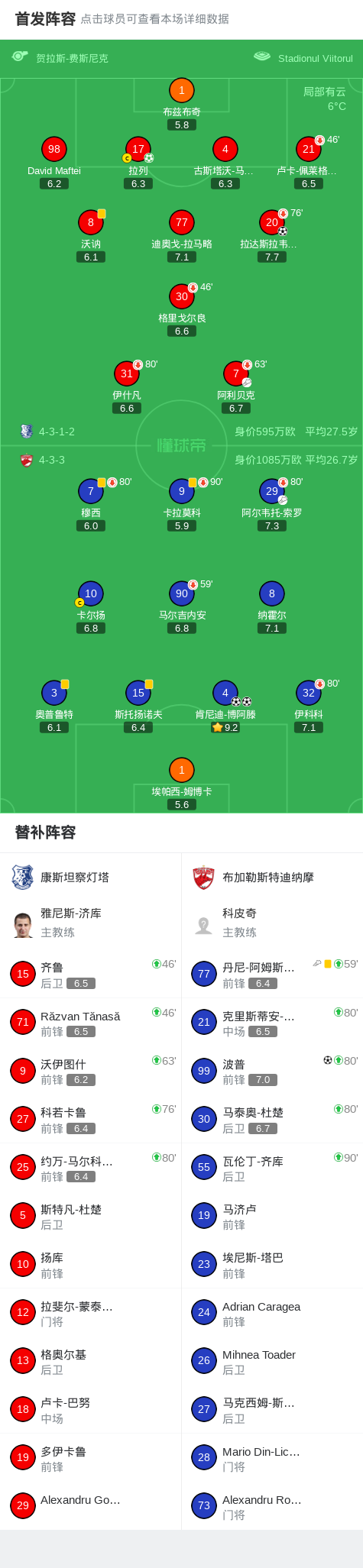 第25分钟,康斯坦察灯塔球员阿利贝克助攻拉达斯拉韦斯库打入一球。