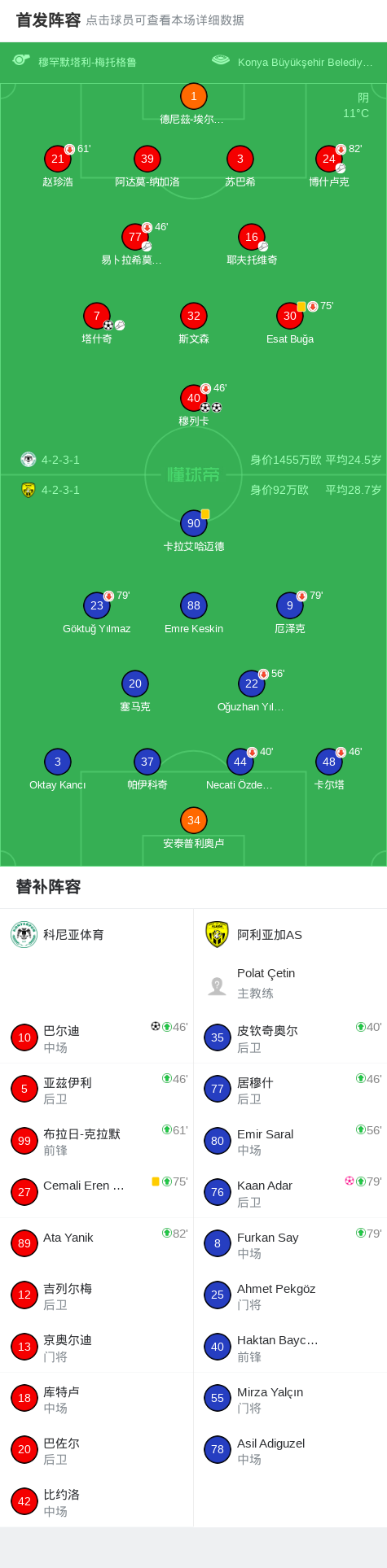 北京时间2月5日土耳其杯 小组赛 第3轮,科尼亚体育对阵阿利亚加AS。科尼亚体育穆列卡梅开二度,塔什奇破门,巴尔迪破门。阿利亚加ASKaan Adar自摆乌龙。最终比分科尼亚体育 5-0 阿利亚加AS。