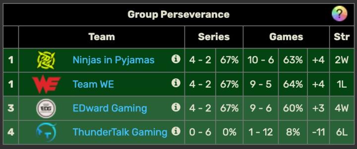 同战绩同净胜分,LPL新增一把坚毅组加赛,明晚7点NIP对战WE