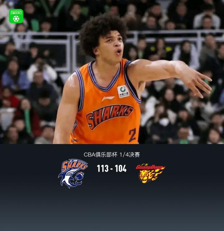 上海113-104广东晋级杯赛四强,洛夫顿31+7+11,奎因空砍37+14