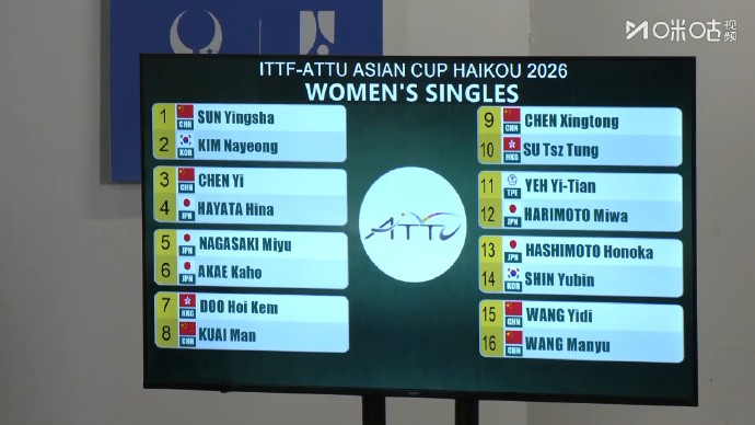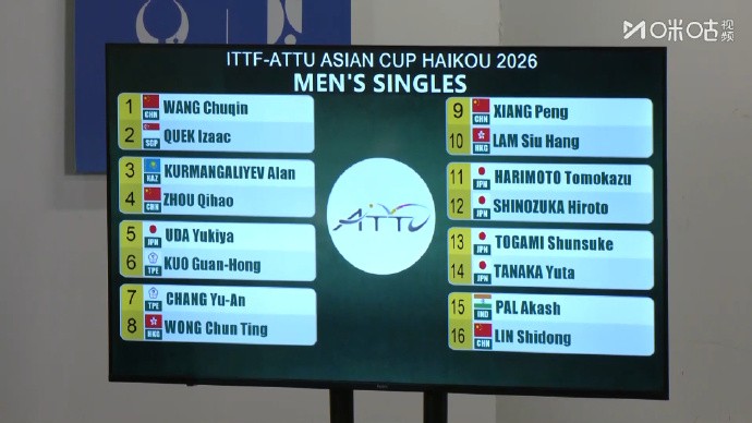 2月6日,乒乓球海口亚洲杯淘汰赛男单、女单签表签表出炉。